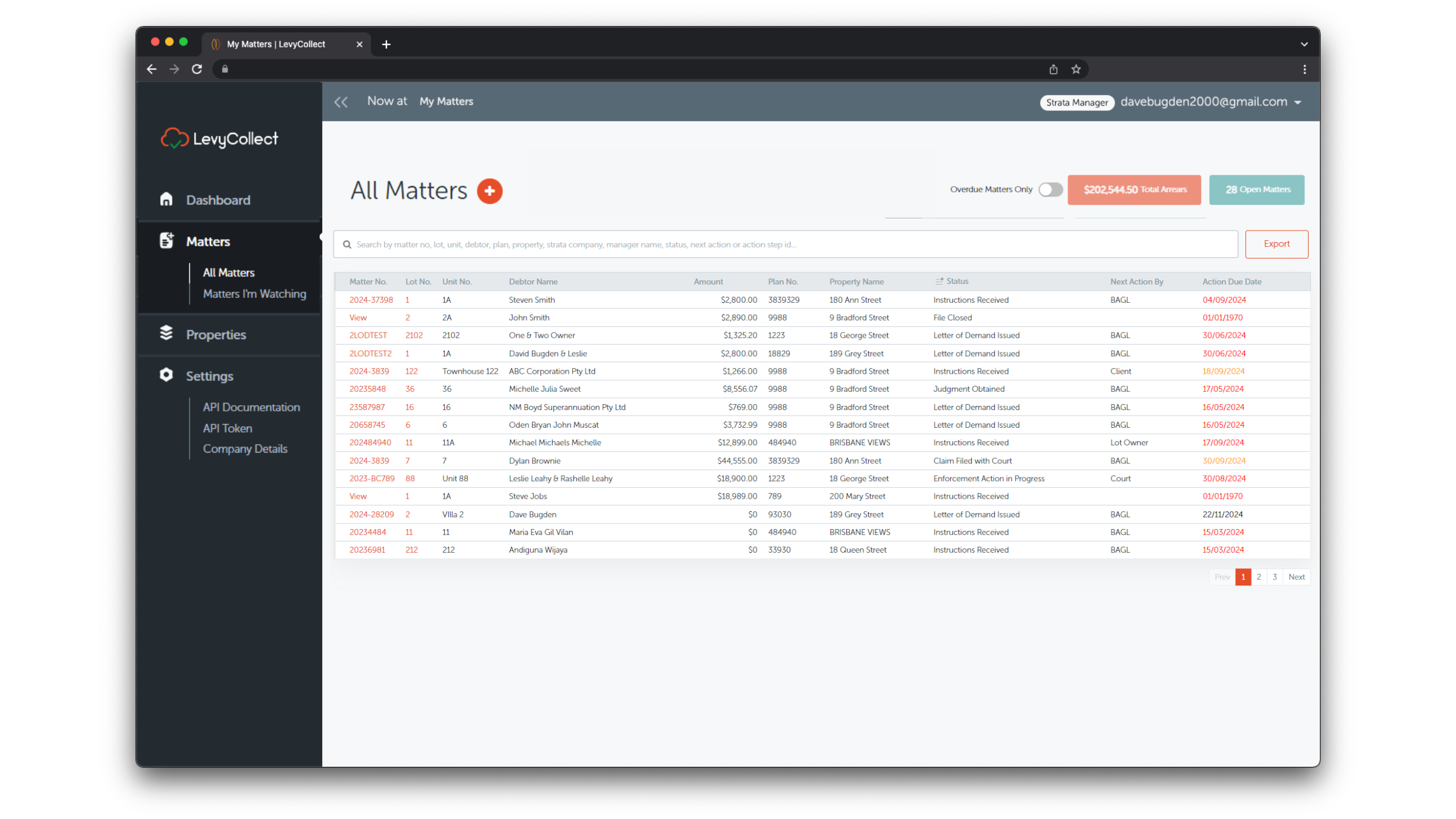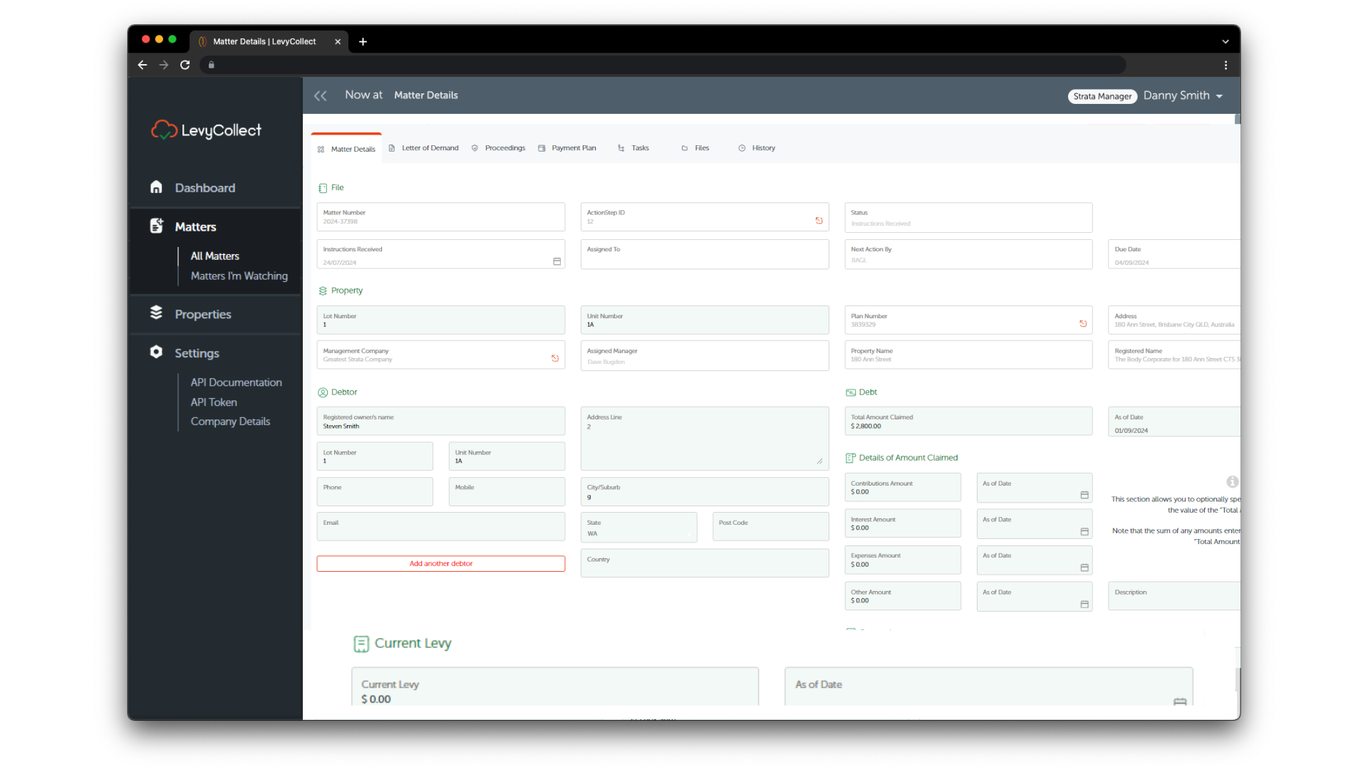 This automation saves time, enhances accuracy, and ensures prompt debt recovery. As LevyCollect manages the collection, real-time updates are sent back to Urbanise Strata, eliminating the need for manual follow-ups with lawyers or debt collectors.